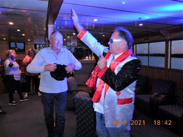 Take it away Frank. Frank Beukers and Elvis U3A Sunset Cruise 16 May 2021
